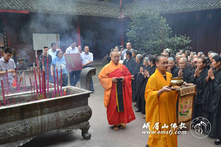 四川峨眉山报国寺恭迎大字《金刚经》一部至大雄宝殿供奉