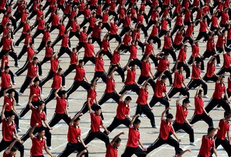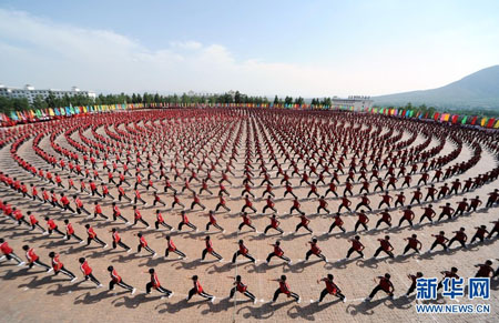 2012年6月9日下午,河南登封少林寺塔沟武校举行万人武术表演,万名武校学生进行武术表演,场面十分宏大,声势惊人,最后学员们用身体组成“天地之中”字样,并拼出巨幅国旗图案。2012年中国文化遗产日活动将主场城市设在郑州,本次万人武术表演是活动内容之一。