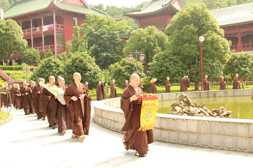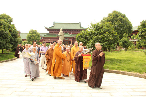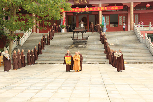 2012年6月20日(农历五月十八日),中国佛教协会副会长,深圳弘法寺方丈上印下顺大和尚一行莅临江西大金山寺,本寺住持上印下空长老率两序大众在山门迎接。