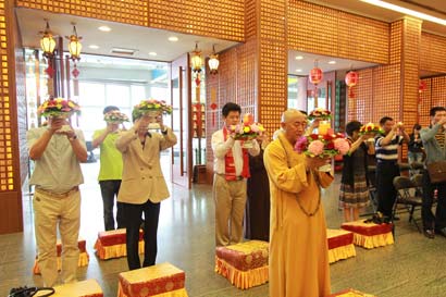 云南省海外联谊会成员献花礼佛(图片来源:台湾灵鹫山 摄影:吴文礼)
