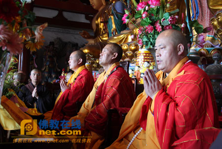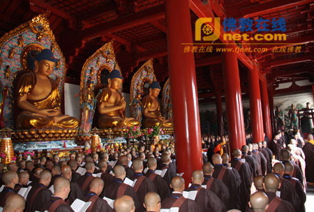 三坛大戒是中国特有的授戒仪式,分初坛正授、二坛正授、三坛正授三阶段。初坛授沙弥、沙弥尼戒,二坛授比丘、比丘尼戒,三坛授出家菩萨戒。依据中国佛教界之传承习惯,有意出家者必须受足此三坛大戒,始被公认为合格之大乘出家人。(佛教在线记者 君扬现场报道)
