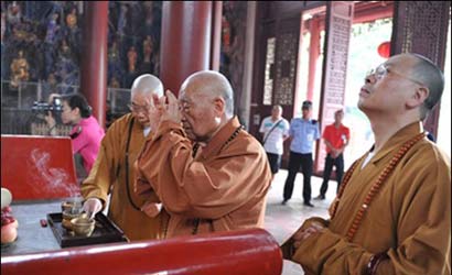 性空长老在大雄宝殿拈香(图片来源:南华禅寺)