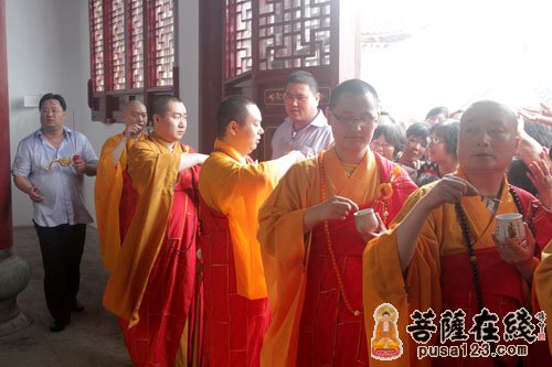 此次法会特礼请中国佛教协会常务理事、江苏省佛教协会副会长、鉴真第83代传人、扬州大明寺方丈能修大和尚莅临青龙寺为寺院主法及为全堂佛像开光洒净。整场法会如法如仪。”