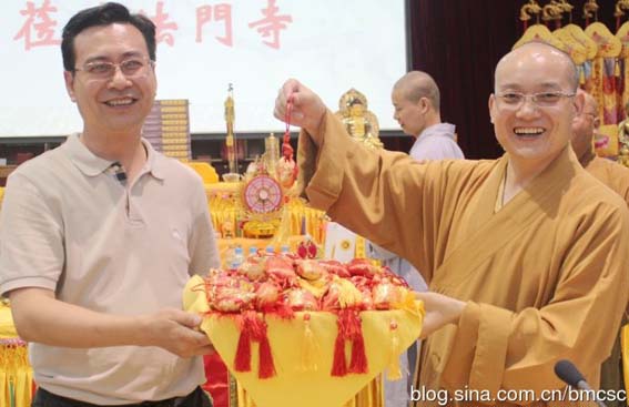 2012年6月23日,正值中华传统节日——端午节,中国侨联海外侨领代表团一行60余人在中国侨联文化交流部陈迈部长和西安市侨联葛青民副主席的陪同下来到陕西扶风法门寺参访,受到了陕西省佛教协会副会长、法门寺监院、法门寺法门寺佛学院常务副院长贤空法师等的热情接待。