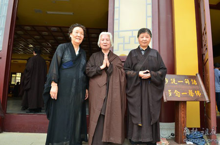 经行结束后,东林网络部记者迎面见到一位刚走出新念佛堂的老人,她依然底气十足地说,她整整80岁了,来自浙江,是随孙女一起来的,在经行念佛中,就是整个身心完全投入到佛号中了,所以真的没有感觉到多么疲倦和闷热。最后,老人兴奋地请求记者帮她拍照,以作为此次昼夜经行念佛的纪念。