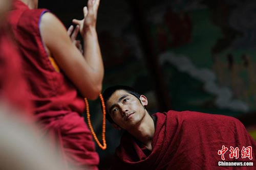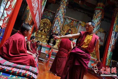 一动一静,一明一虚,令原本安静的课堂变得沸腾起来,2012年6月27日下午,云南佛学院迪庆藏传佛教分院的僧人们展开一场激烈的“辩经”课。