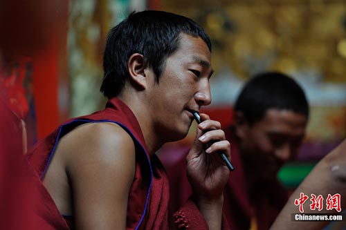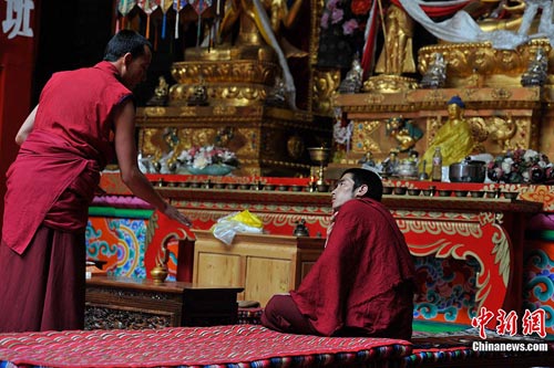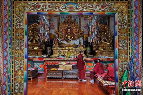 云南佛学院迪庆藏传佛教分院位于海拔3300多米的迪庆藏族自治州香格里拉县郊外,学院成立于2005年,目前共有40多名喇嘛学员,主要来自云南、西藏、四川等地的多个藏传佛教寺院。他们的生活费和学费都由当地政府和学校承担,除了藏文、汉语、佛学理论外,还学习时政、英语、计算机等。(文:马骞 图:刘冉阳)