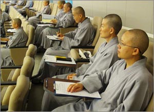 在即将毕、结业前夕,2012年6月19日上午9时,就读法鼓山僧伽大学的五位学僧于法鼓佛教学院阶梯教室发表年度毕业制作暨禅修专题,由全校学僧共同参与,会中并请指导老师就学僧的专题呈现,当场给予评分。在发表过程中,学僧各个台风稳健、对应如流,展现清晰的思路与优异的论述能力,令台下师生反应热络、回馈不断,现场散发一股温馨欢喜的法义交流氛围。