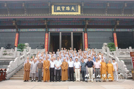 永寿法师致辞结束后,峨眉山佛学院2010级、2011级预科班毕业典礼在《三宝歌》歌声中落下帷幕,全体参会人员在大佛禅院大雄宝殿前合影留念。