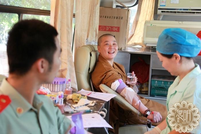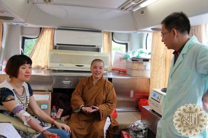 活动发起人市佛教协会副会长、区佛协会长、进明寺住持普端法师为众人开示,“爱心无价,真心永恒,佛教讲究善恶因果,当你在帮助别人的同时,已经为自己和家人积下了无量功德。无偿献血,奉献我们的爱心,让社会更和谐、心灵更祥和!”