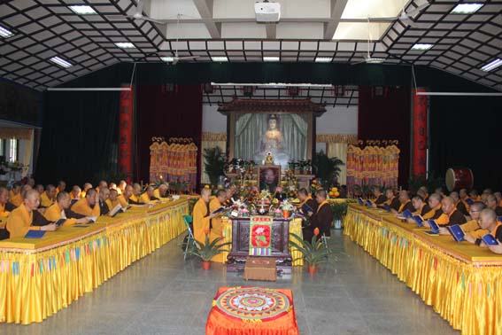 监院智超法师带领常住僧众、佛学院师僧及众居士于法堂诵经,祈愿长老含笑常寂光天,乘愿再来娑婆,接引后学,普度众生。