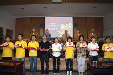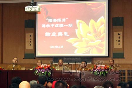 2012年6月30日下午,中国佛学院“法海探源”首期佛学中级班举行结业典礼及汇报演出。中国佛学院副教务长广如法师、教务处副主任永兴法师、网络部主任智俊法师,以及培训部主任容通法师、副主任法广法师出席了结业典礼。结业典礼由培训部主任容通法师主持。