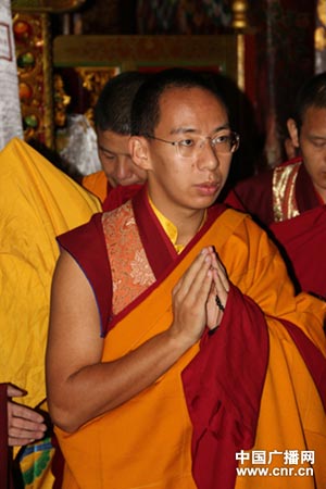 第十一世班禅大师在朝拜大昭寺时诵经祈福(图:国际在线)