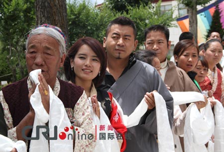 信众在班禅行宫恭候班禅大师(图:国际在线)