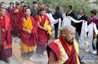 2012年8月4日,平措林寺迎接班禅大师(图片来源:新华网)