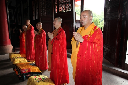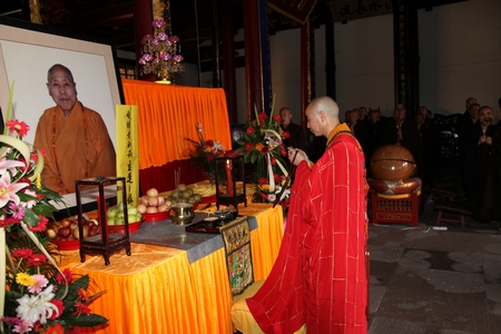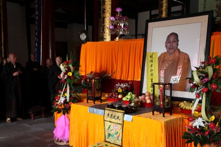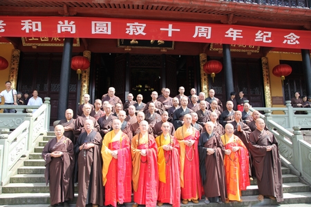 我寺邀请了浙江省佛教协会会长、雪窦寺方丈怡藏大和尚,浙江省佛教协会副会长、宁波市佛教协会会长、本寺方丈诚信大和尚,浙江省佛教协会副会长、宁波市佛教协副会长、七塔寺方丈可祥大和尚,宁波市佛教协副会长、阿育王寺方丈界源大和尚,本寺监院德云法师,及本寺常住两序大众,参加此次法会的还有宁波,上海的居士,云集法堂。为明旸老和尚圆寂十周年诵经回向,以此来缅怀祖德,愿老和尚能乘愿再来,度化一切有缘众生。
