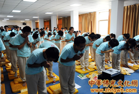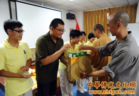 慧中法师开示道,在禅修营期间,大家学到的最根本的应该是明白了自己的佛性,明白了自己本身就具有能量,具有慈悲心和菩提心。但是,大家回去后,千万不要因此而有我慢之心,看不起还没有明白的人,包括我们的父母、老师和朋友。相反,我们应该更谦虚。所谓活在当下,老师和家长都是当下师,烦恼也是我们的老师。有烦恼说明我们的慈悲心还不够,我们应该观照它,接受它。在烦恼慢慢减少的同时,我们的智慧也将随之增加。禅在平时的生活里,在孝敬父母上,在一点一滴的小事里,希望大家回去后将禅的精神延续下去。