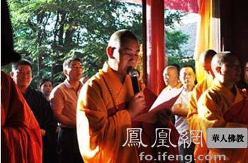 黛螺顶住持昌善法师诵念请灯法语(图片来源:凤凰网华人佛教 摄影:杨珏)