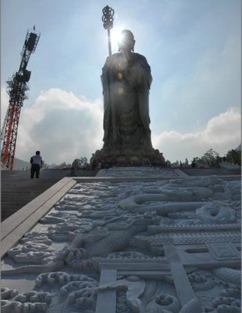 安徽九华山99米地藏菩萨露天铜像主体工程竣工