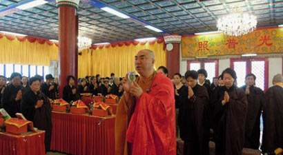 2012年8月25日(七月初九日)启坛日上午8时50分,法会正式开始。宽运法师于此间开示“佛教盂兰盆供的起源与意义”。 (宽运法师博客)