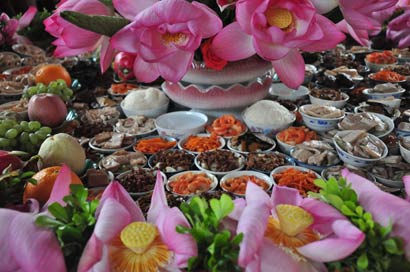 中元节,广东四会六祖寺方丈大愿法师为成就十方大众慈孝之心,特率两序大众于2012年8月30日在六祖寺,为来自海内外、全国各地信士近千人隆重举行一年一度盂兰超幽盛会,法会以供僧和超度七世父母、孤魂、田子,承蒙佛力,得生净土,接引往生西方极乐世界为殊胜。普渡法会由六祖寺大愿法师主法;界霖法师、登玄法师护持。法会期间,僧众齐诵《地藏菩萨本愿经》,并有瑜伽焰口。(广东四会六祖寺)
