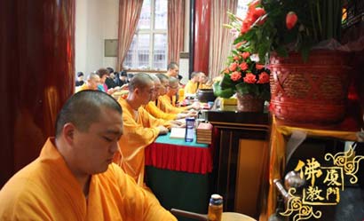 能仁寺住持能元法师带领大众恭诵《地藏经》、《金刚经》、礼《梁皇宝忏》(图片来源:厦门能仁寺)