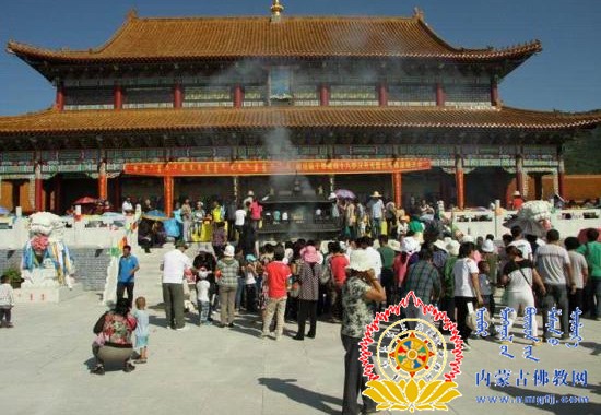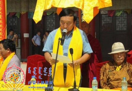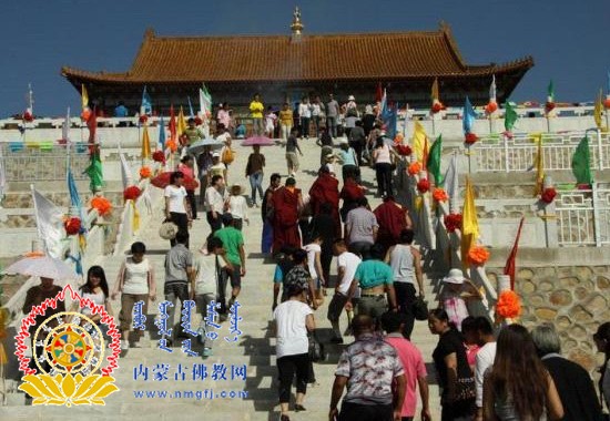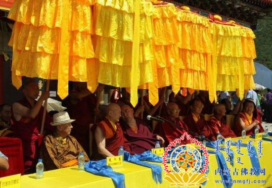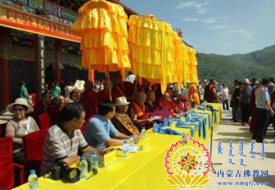 7月24日上午根培庙千尊度母、十八罗汉开光暨长寿佛灌顶法会在根培庙大雄宝殿前举行。内蒙古佛教教协会常务副会长、九世查干活佛那日松,兴安盟科右中旗吉佑寺第九世莫日根活佛阿旺普日来乾达木尼,赤峰市佛教协会会长十三世新庙塔日吉德活佛,六世隆知班智达洛桑次成沙布楞,通辽扎鲁特旗班萨庙拉西鹏斯格活佛,通辽市扎鲁特旗宫根庙宝音德力根沙布楞等各地高僧大德、居士前来参加此次盛大法会。旗人大副主任乌日图,副旗长巴图吉日嘎拉,各旗直单位苏木镇负责人及近万名信众一同参加法会。