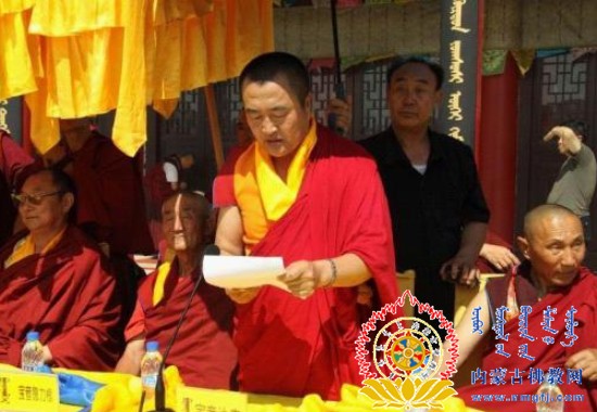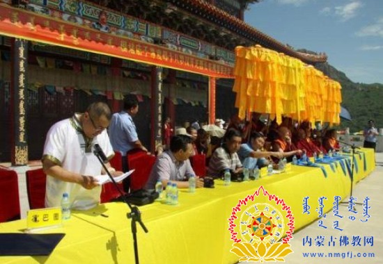 旗民宗局局长宝玉主持法会开幕式,根培庙住持宝音达来致欢迎辞,赤峰市佛教教协会会长塔日吉德活佛致辞。法会为期三天,分别进行诵经祈福、讲解佛教经书并举行长寿灌顶等活动。