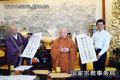 2012年8月19日,祈祷中日友好世界和平大法会暨中日佛教禅墨展在北京灵光寺举行。蒋坚永副局长出席了法会并在禅墨展上致辞。