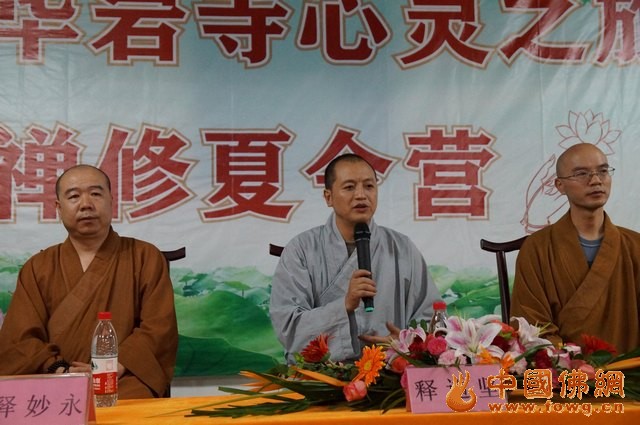 首先,道坚法师为来自全国各地50多名营员们开示,法师讲到,为什么华岩寺要在炎炎夏日举行禅修夏令营,就是让平时在城市喧嚣中生活的人们了解佛门清净和清凉,也为营员们提供一个学习和了解佛学的平台以及禅门生活,通过为期5天丰富多彩的夏令营生活,营造出一个净化心灵的环境,以及对佛教有一个全新的认识和了解。