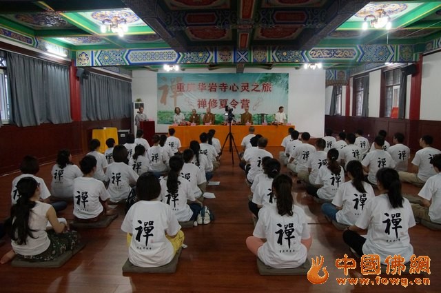 2012年8月18日,重庆华岩寺"第四届心灵之旅禅修夏令营”开营仪式在大众合唱《三宝歌》的歌声中拉开帷幕。