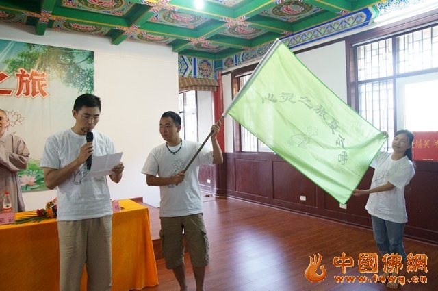 随后,道坚法师为营员代表授营旗,并宣布"第四届重庆华岩寺心灵之旅禅修夏令营”正式开营。