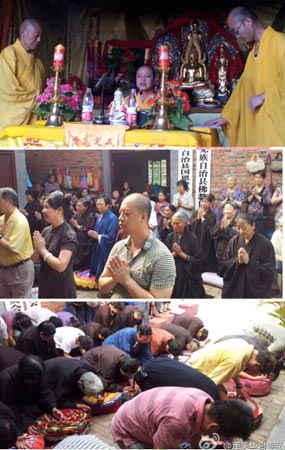 四川北川国恩寺举行皈依仪式 道坚法师为信众授皈依