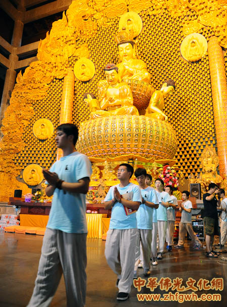 在接下来为期一周的禅修中,莘莘学子会接受系统的禅修训练,聆听佛教高僧关于佛教义理与修行的开示,来自各文化领域的专家学者就佛教与文化、宗教与现实人生等诸多延伸课题展开的讲座。另外,别开生面的“普茶”、“夜话”、“传灯法会”、“佛教音乐晚会”、“行脚”,以一种生动活泼的形式让当代的青年直观的感受到佛教文化的魅力。