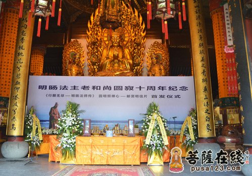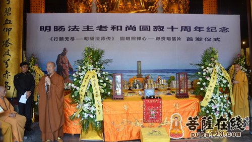 2012年8月1日,上海龙华古寺举行明旸长老圆寂十周年纪念法会暨《行愿无尽——明旸法师传》圆明照禅心邮资明信片首发仪式。
