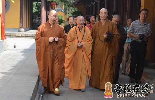 照诚大和尚、明学长老、宏明大和尚步入法会现场(图片来源:菩萨在线 摄影:妙雨)