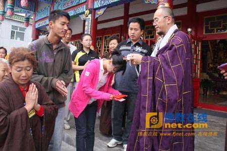 出关后闻知金山屯区有两名特困户的孩子以630分以上同时考入了上海交通大学,中慧法师出关后第一时间就就是关心这两名贫困生的情况,并向其捐赠善款5000元,让其努力学习,为金山屯做贡献。
