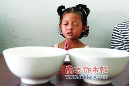 弘法寺斋堂内,小朋友在开餐前双手合十。南都记者霍健斌摄
