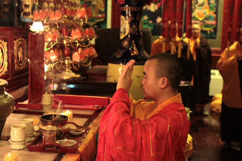2012年8月31日早上5点,千亿圣号大念诵回向法会在峨眉山金顶卧云禅院正式开始。