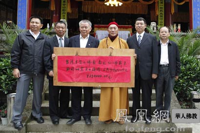 台湾灵鹫山向云南彝良地震灾区捐款25万元(图片来源:凤凰网华人佛教 摄影:王琬)