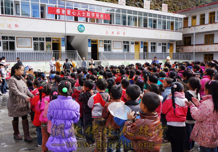 2012年9月19日6时,成都文殊院“佛心一家亲”公益助学活动进入藏区,为四川阿坝壤塘茸木达中心校的同学们带去精心准备的生活与学习用品。