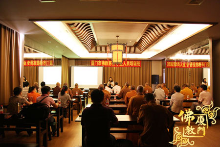 为加强佛教慈善工作相关人员的培训学习,不断提高自身素质,推动厦门市佛教慈善事业的健康稳定发展。9月21日上午8时30分,厦门市佛教慈善专业人员培训班在湖里区天竺岩寺竹缘阁开课。邀请专家、学者进行讲解授课及相关慈善机构进行经验交流介绍。全市各佛教慈善机构主要负责人、市佛协副秘书长以上人员、各区佛教协会主要负责人、市管寺院负责人等参加了慈善培训班。市民宗局黄镇辉副局长、沈仲勇副调研员出席会议。