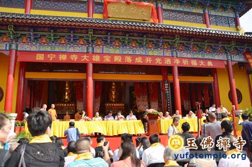 2012年9月15日,中国佛教协会副会长、上海市佛教协会会长、上海玉佛禅寺方丈觉醒大和尚应邀前往江苏常州参加国宁禅寺大雄宝殿重建落成暨佛像开光法会。