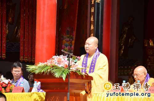法会由国宁禅寺住持慧中法师主持,于上午9:30正式开始,觉醒大和尚在典礼上致辞,祝贺国宁禅寺重建落成,祝愿到会参加活动的各级领导和居士法喜充满,六时吉祥!同时也祝愿国宁禅寺在慧中法师带领下能法务昌隆,造福一方信众!