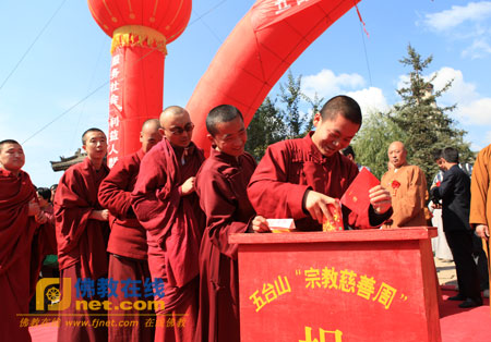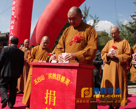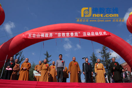 2012年9月19日上午,山西省五台山佛教界以“捐资助教、慈爱人间”为主题的“宗教慈善周”活动启动仪式在五台山寺庙中心群广场上隆重举行。