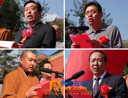 山西省忻州市委统战部副部长、忻州市宗教局局长赵雁宾,五台山风景名胜区委副书记赵培官,五台山宗教局局长刘文光,五台山佛教协会会长昌善法师,五台山佛教协会常务副会长章样摩兰喇嘛,五台山佛教协会副会长兼秘书长悲月法师,五台山佛教协会副会长如空法师、格桑热杰喇嘛、常青法师、能戒法师、海信法师、义山法师、汇光法师、义亮法师、果祥法师、张永忠居士等佛协领导和五台山全山各个寺庙代表,以及五台山小学全体师生共同参加了启动仪式。