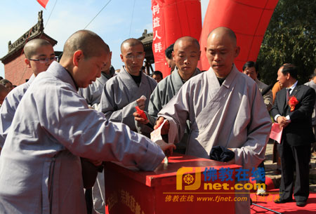 首先赵培官副书记发表讲话,他指出五台山佛教界启动“宗教慈善周”活动是落实中央六部委《关于鼓励和规范宗教界从事慈善活动的意见》的一项具体举措,也是推动五台山佛教界公益慈善活动健康有序开展的一次有益尝试。五台山佛教界秉承佛教优良传统,身在佛门,心系社会,慈悲济世、利益众生,举善事,做功德,捐资助学,抗震救灾,扶贫济困,受到社会各界的广泛好评,有效的促进了经济发展和社会和谐。并希望广大佛教界人士主动参与捐资助教的慈善活动中,与景区政府携手完成景区内两所中心学校建设的光荣任务。