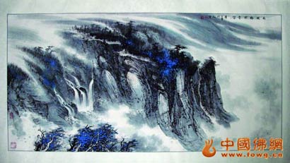 慈善晚会拍卖的山水画作品(图片来源:重庆华岩寺)