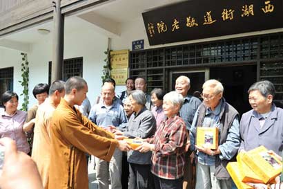 上海玉佛禅寺向社区孤寡老人赠送月饼共庆中秋