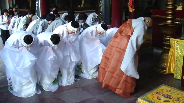 2012年9月4日晚,韩国曹溪宗金刚净土寺住持慈愿法师带领韩国佛母会一行30多人到达安徽天柱山三祖禅寺,这是佛母会第二次朝礼祖庭。次日清晨,他们穿上白色的礼服(给佛祖敬礼时用的衣服)在大雄宝殿举行了庄严的供佛、赠礼仪式,和上次一样,他们用很多精美的礼品供佛,并向宽容法师赠送了金色的织锦袈裟,以此来表达他们对佛陀、祖师的崇敬以及对宽容法师的敬仰。